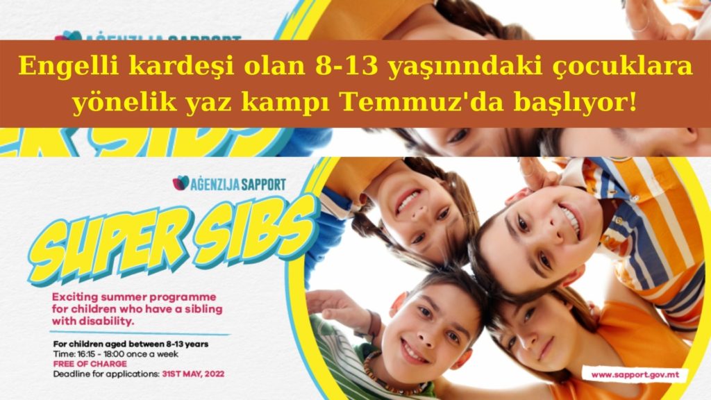 Malta’da engelli kardeşi bulunan 8-13 yaş arasındaki çocukların birbirleriyle tanışmalarını ve karşılaştıkları olumlu olumsuz tecrübelerini paylaşabilmelerini sağlamak amacıyla hazırlanan yaz kampı Super Sıbs Temmuz ayında başlıyor.