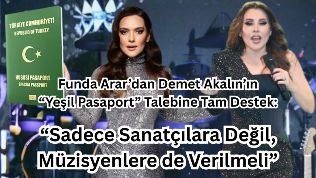 Ünlü şarkıcı Funda Arar, meslektaşı Demet Akalın’ın sanatçılara yeşil pasaport verilmesi yönündeki çağrısına destek verdi ve bu hakkın yalnızca sanatçılarla sınırlı kalmaması gerektiğini vurguladı.