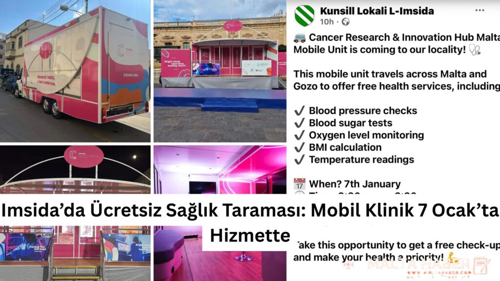 Cancer Research & Innovation Hub Malta tarafından yürütülen mobil sağlık ünitesi, 7 Ocak Çarşamba günü Imsida’da halka açık ücretsiz sağlık hizmeti sunacak.
