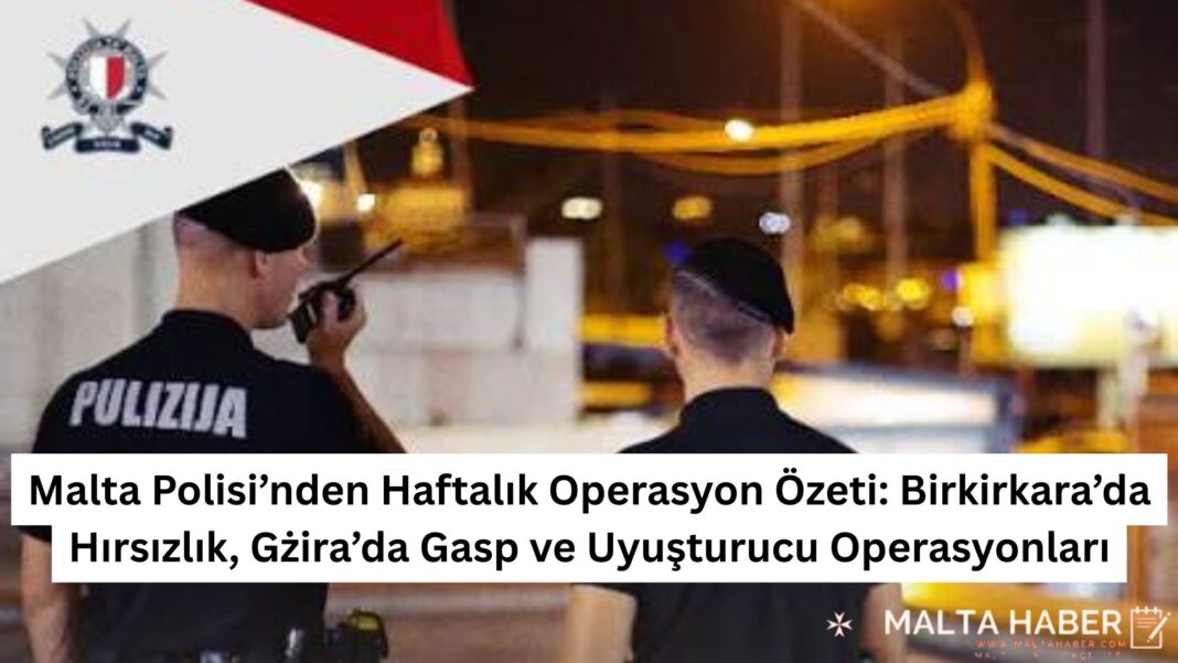 Malta’da güvenlik güçlerinin geçtiğimiz haftaya ilişkin operasyon özeti kamuoyuyla paylaşıldı. Emniyet birimlerinin farklı bölgelerde yürüttüğü çalışmalar kapsamında çok sayıda şüpheli gözaltına alınırken, çeşitli suçlara karıştıkları belirlenen kişiler hakkında mahkeme süreci başlatıldı.