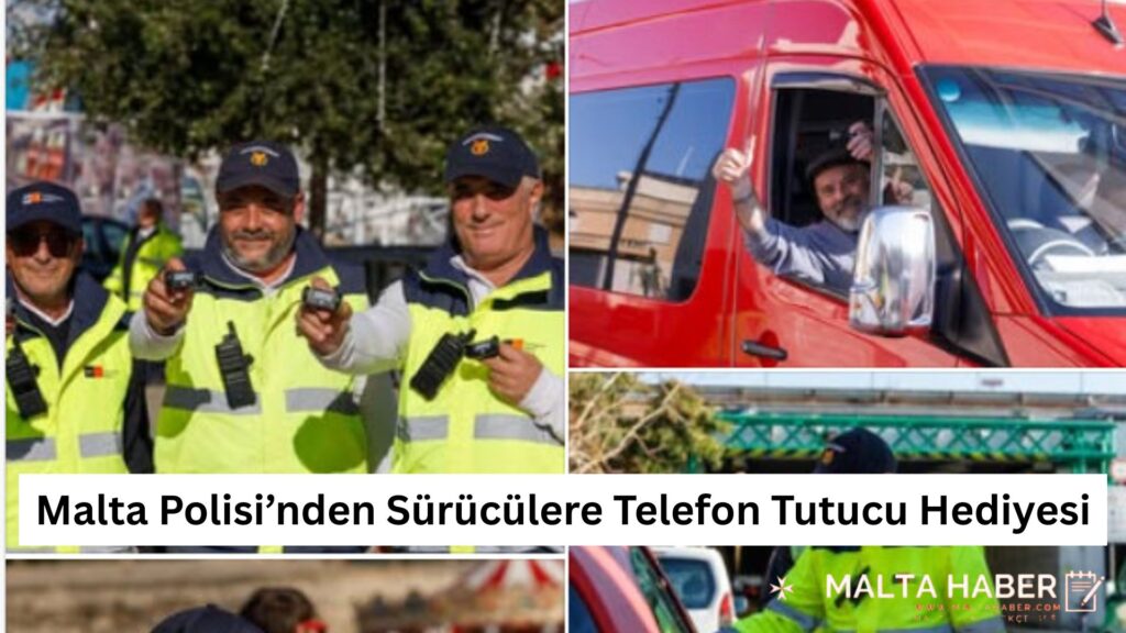 Malta Polisi, yılbaşı dönemi öncesinde trafik güvenliğine dikkat çekmek amacıyla sürücülere mobil telefon tutucusu dağıttı.