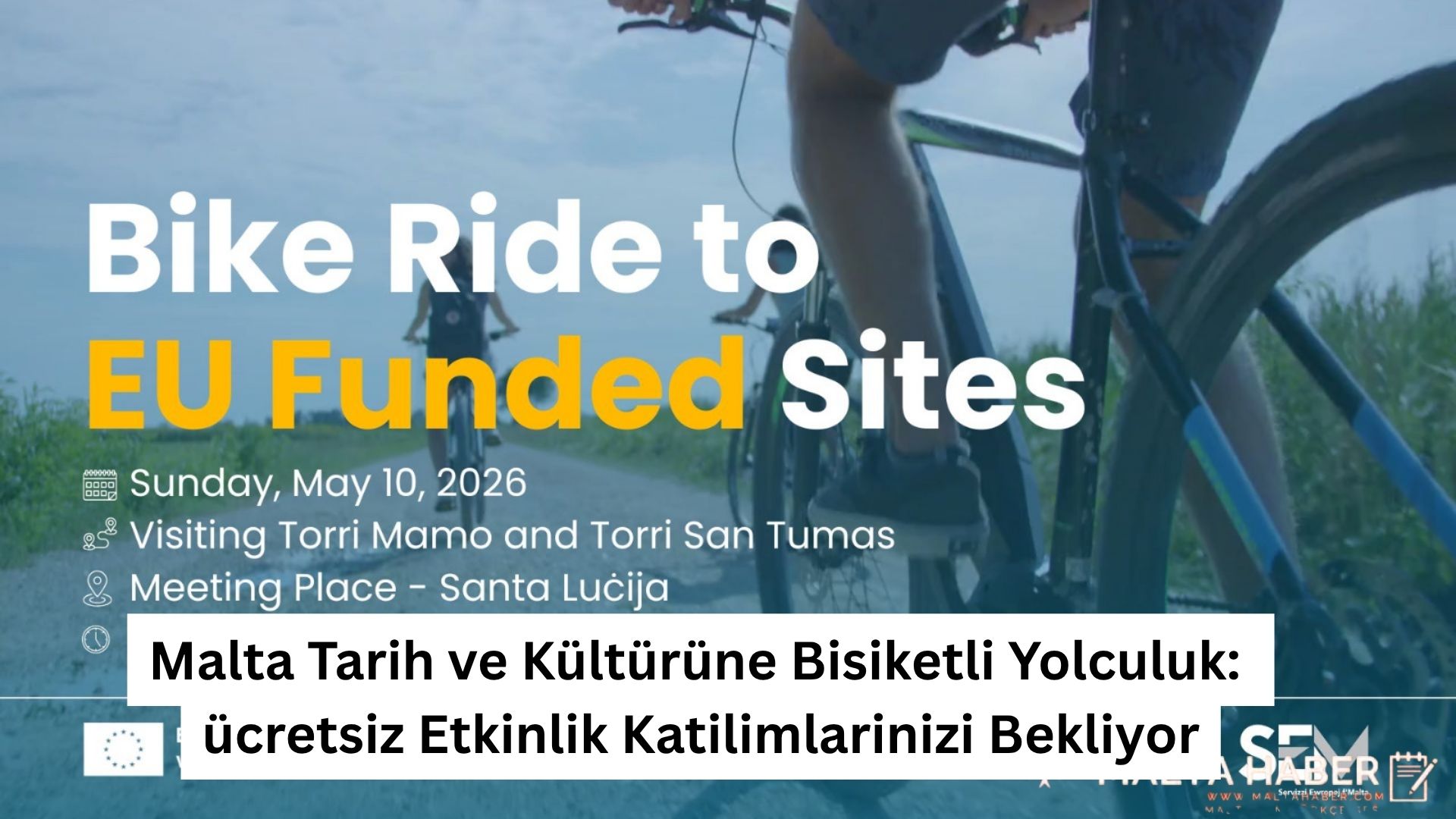 Avrupa Günü kapsamında Malta’da AB fonlarıyla desteklenen kültürel ve tarihî noktalara özel bir bisiklet turu düzenlenecek. Servizzi Ewropej f’Malta’nın, Malta on Bike iş birliğiyle organize ettiği etkinlik, 10 Mayıs Pazar günü Santa Luċija’dan başlayacak ve yaklaşık 30 kilometrelik rota boyunca Marsaskala, Żejtun, Delimara, St Peter’s Pool, Marsaxlokk ve Għaxaq hattını kapsayacak.
