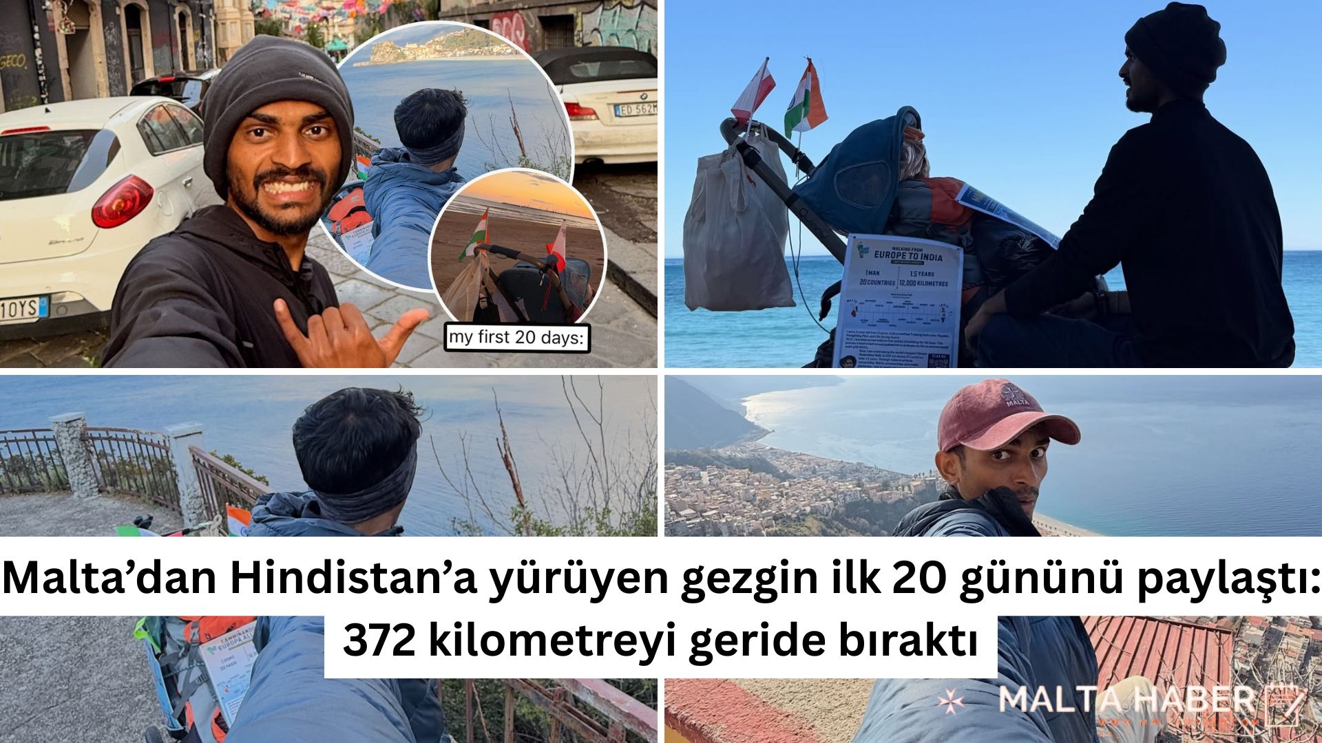 İklim değişikliğine dikkat çekmek amacıyla sıra dışı bir yolculuğa çıkan gezgin Jaydip, Malta’dan başlayarak Hindistan’a kadar uzanacak yürüyüşünün ilk 20 gününe ait fotoğrafları sosyal medya hesabından paylaştı. Zorlu parkurda kısa sürede yüzlerce kilometre kat eden gezginin hikâyesi büyük ilgi gördü.