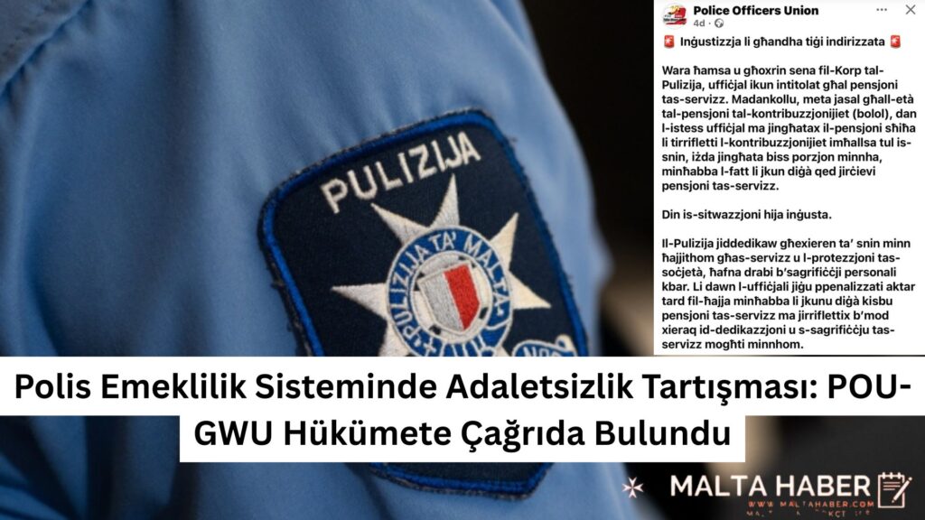 Malta’da görev yapan polis memurlarının emeklilik haklarına ilişkin uygulama, Police Officers’ Union (POU-GWU) tarafından “adil olmayan bir sistem” olarak nitelendirilerek yeniden gündeme taşındı.