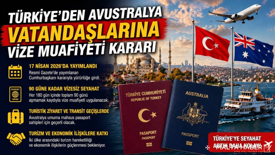 Yeni düzenleme, turizm ve kısa süreli seyahatleri kapsıyor. Uygulamanın 17 Nisan 2026 itibarıyla geçerli olduğu belirtildi. Böylece Avustralya vatandaşları Türkiye’ye girişlerde vize başvurusu yapmadan seyahat edebilecek.