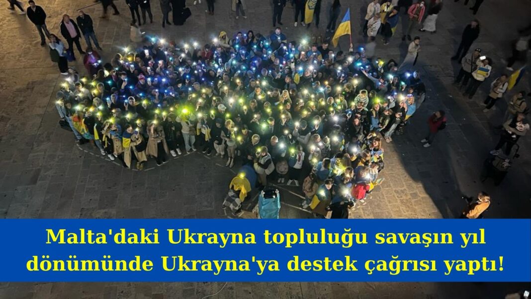 Rusya’nın Ukrayna topraklarına başlattığı askeri hareketin yıl dönümünde bir araya gelen Malta’daki Ukrayna topluluğu Rusya’yı protesto etti.