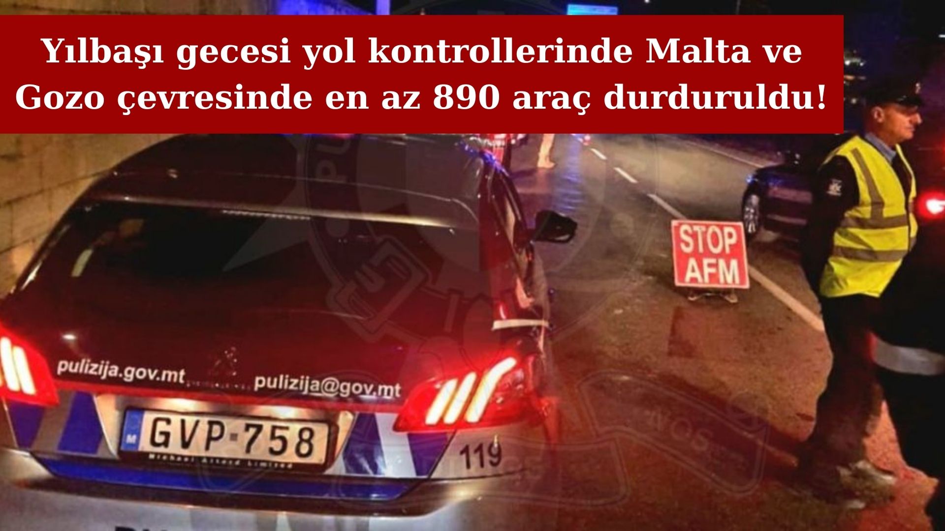 Yılbaşı gecesi polis ve silahlı kuvvetlerin ortaklaşa denetimlerinde çok sayıda trafik kontrol noktası kuruldu. Malta ve Gozo çevrelerinde kurulan kontrollerde en az 890 araç durduruldu.